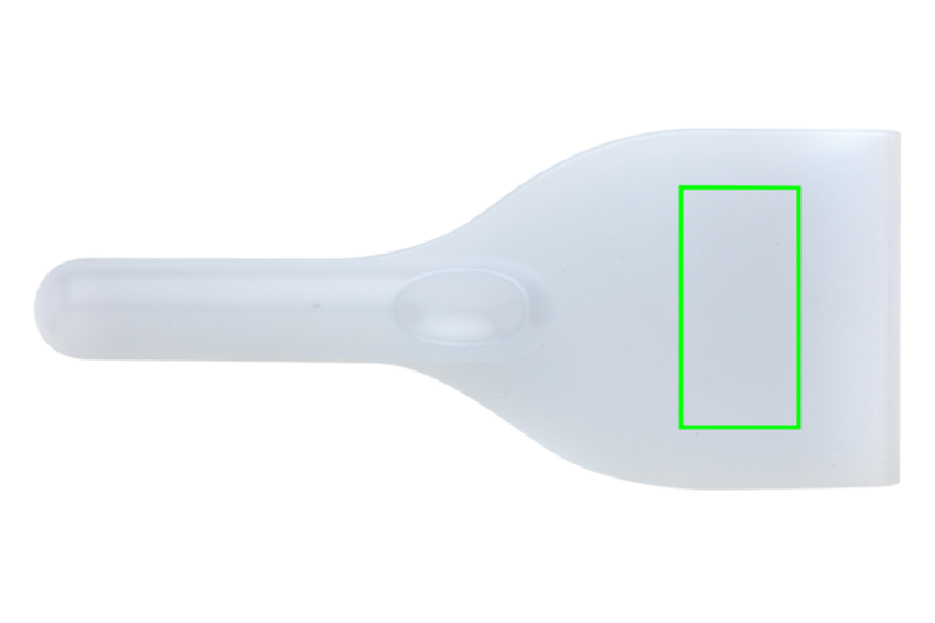 Praktická škrabka na led z částečně průhledného PS. Koncová tloušťka škrabky: 0.6cm.