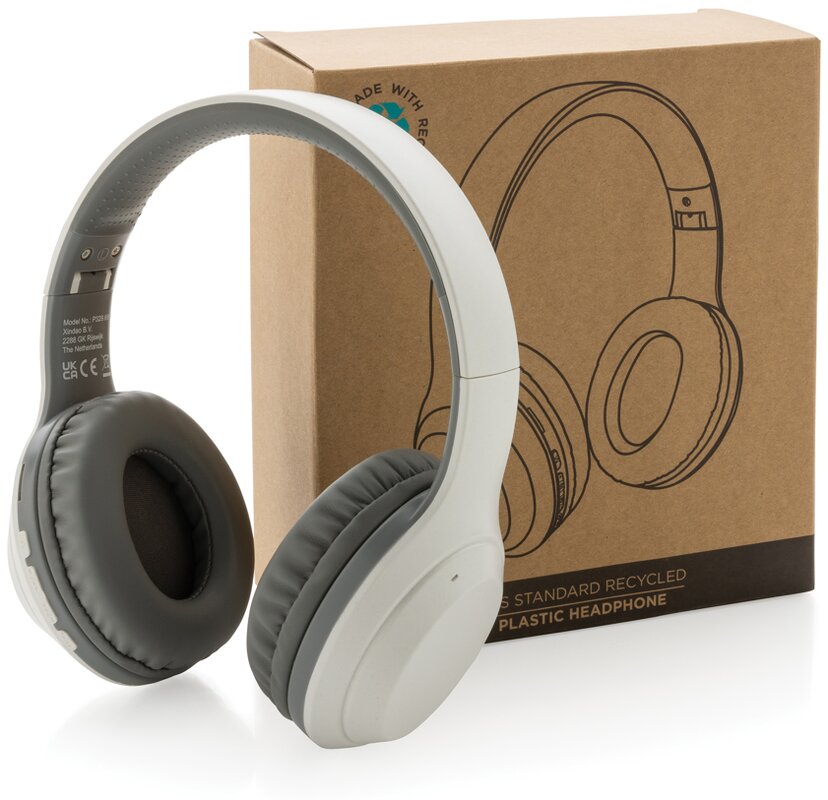 Skládací sluchátka, která jsou vyrobená z recyklovaného ABS plastu s RCS certifikací. Produkt obsahuje: baterii s kapacitou 200 mAh pro poslech po dobu až 6h na jedno nabití (1,5h), BT 5.0, jež zajišťuje snadné a stabilní bezdrátové připojení na vzdálenost až 10m, mikrofon pro příjem hovorů a také nabíjecí kabel z recyklovaného TPE. Celkový podíl recyklátu dle váhy produktu: 65 %.Výrobek je vyroben bez PVC.