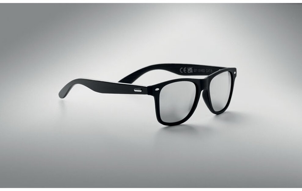 Sluneční brýle RHODOS s černě potaženými bambusovými nožičkami a zrcadlovými skly. Ochrana UV400.