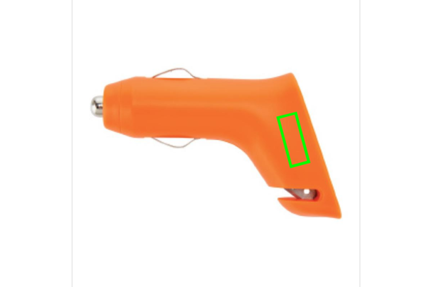 Duální USB autonabíječka, která je použitelná k dobíjení dvou mobilních zařízení současně. Navíc je vybavena také bezpečnostním nožem na pás či nástrojem na rozbití okna v případě nouze. Výstup: 5 V/2,1 A.