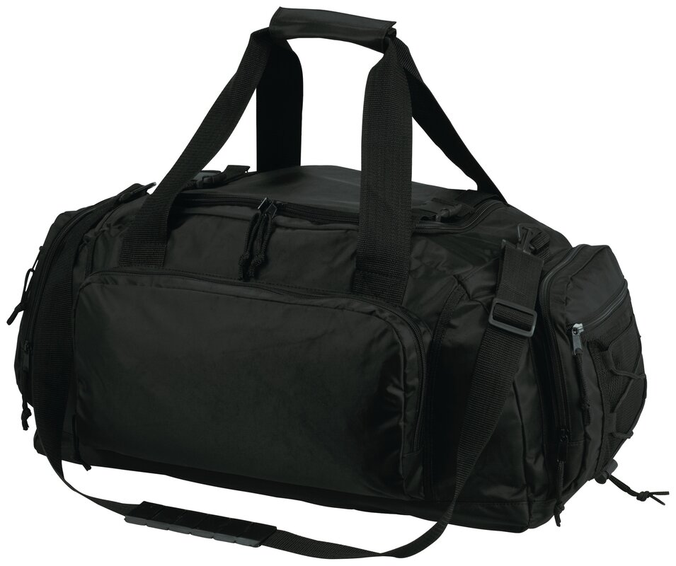 Velký vnitřní prostor s upínacími pásy, boční síťované kapsy s taháčkem, velká přední kapsa na zip, popruh přes rameno s nárameníkem