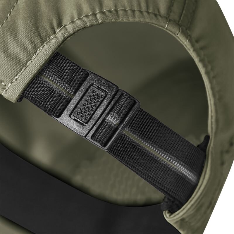 Lehký a prodyšný materiál, měkká potní páska, laserované větrací otvory, nastavitelné zapínání na klip s popruhem, regulující vlhkost a rychleschnoucí, štítek TearAway, nesmí se prát, nelze žehlit, nelze sušit v sušičce, nelze chemicky čistit 100% Polyester 75D