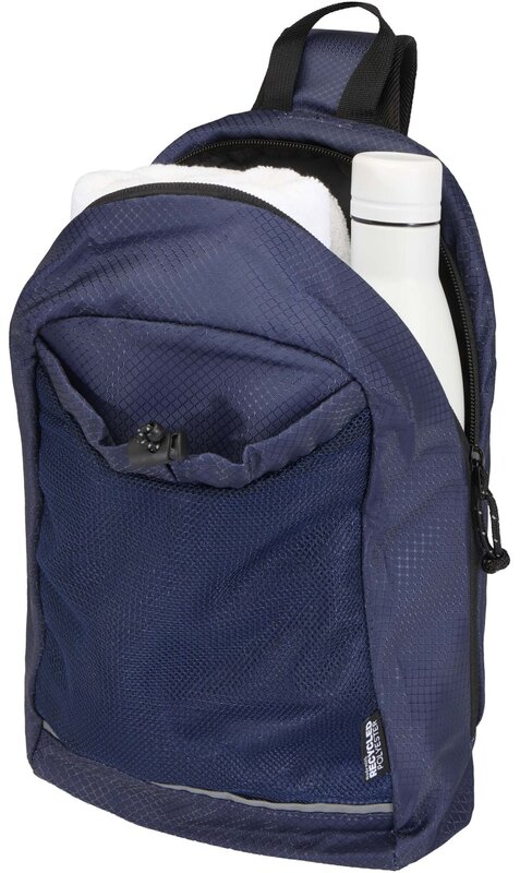 Crossbody taška Nomad je navržena pro aktivity, při kterých potřebujete mít vodu i osobní věci stále po ruce. Je vyrobena z recyklované ripstop tkaniny s certifikací GRS a vodoodpudivou úpravou, doplněná podšívkou z RPET a reflexními detaily pro vyšší bezpečnost.
