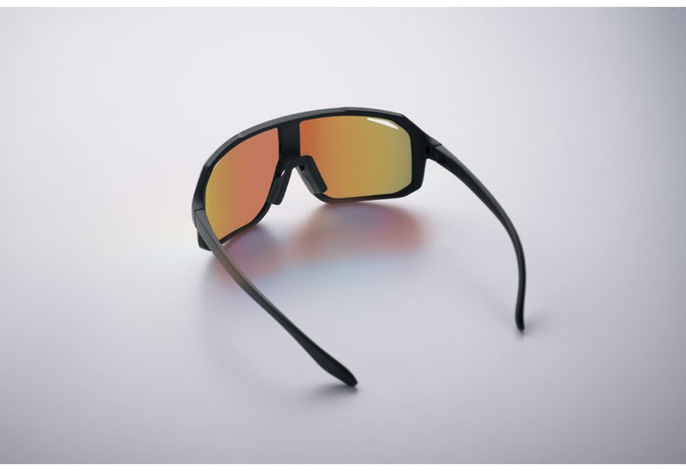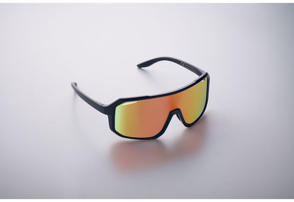 Sportovní sluneční brýle se zrcadlovými skly a barevným rámečkem. Ochrana UV400.