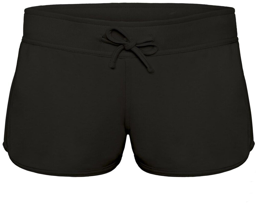 Dámské šortky z letního materiálu French Terry v Neo retro vzhledu mají elastický měkký pas se šňůrkami a lemování od bočních švů až dolů.