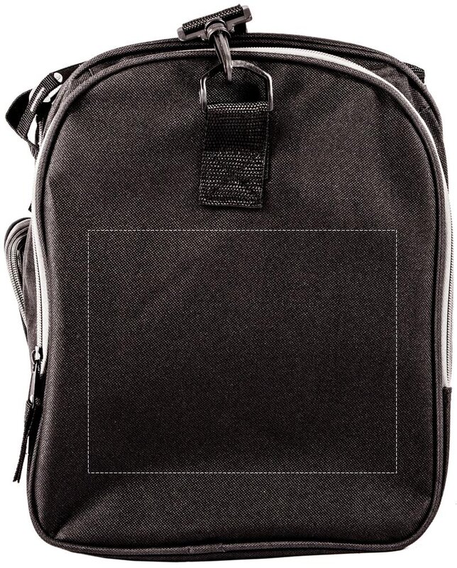 Sportovní taška z 600D polyesteru se 2 zipy, bočními přihrádkami a 1 kapsou na zip. Na přední kapse je očko pro sluchátka. Taška má odnímatelný a nastavitelný popruh přes rameno.
