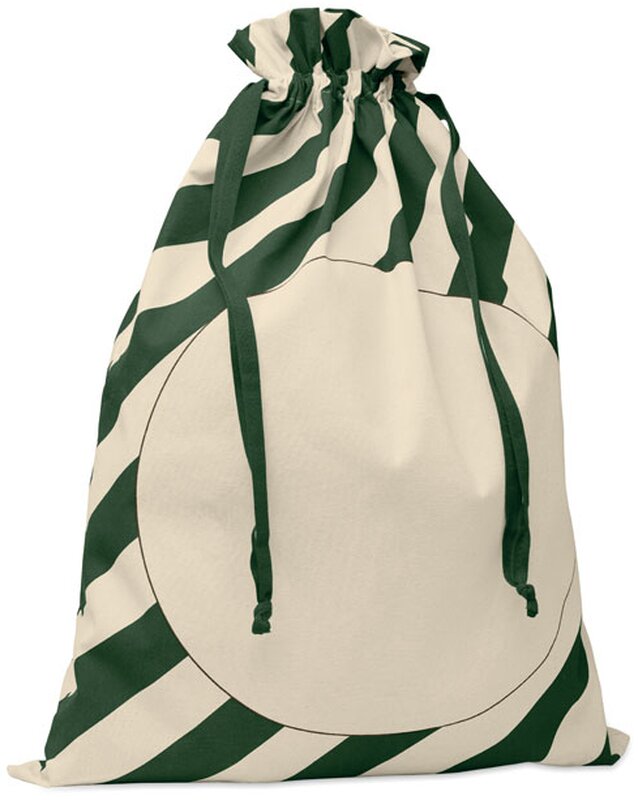 Bavlněný stahovací vak o rozměru 50 x 70 cm ve dvou vánočně laděných barvách.