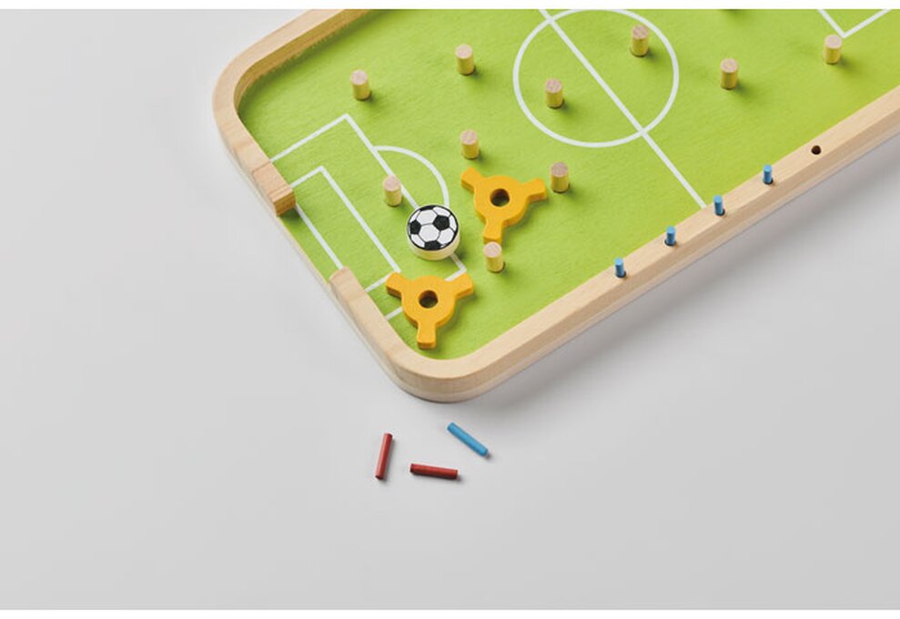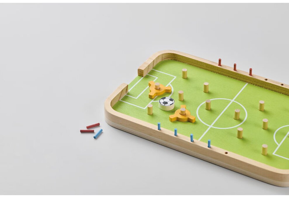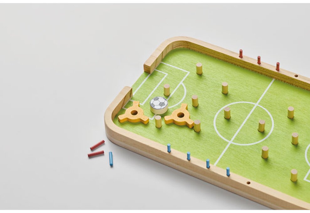 Dřevěný stolní fotbálek BOLIN pro skvělou zábavu, ideální pro firemní potisk. Kompletní hra obsahuje hráče, míč, střelce a skórovací tyčky pro okamžitou hru. Perfektní pro přestávky v práci, teambuilding nebo jako originální firemní dárek.