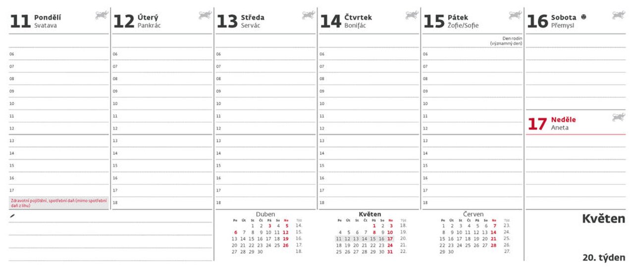 + daně, roční období, znamení zvěrokruhu, citáty, EU svátky, 3měsíční přehled