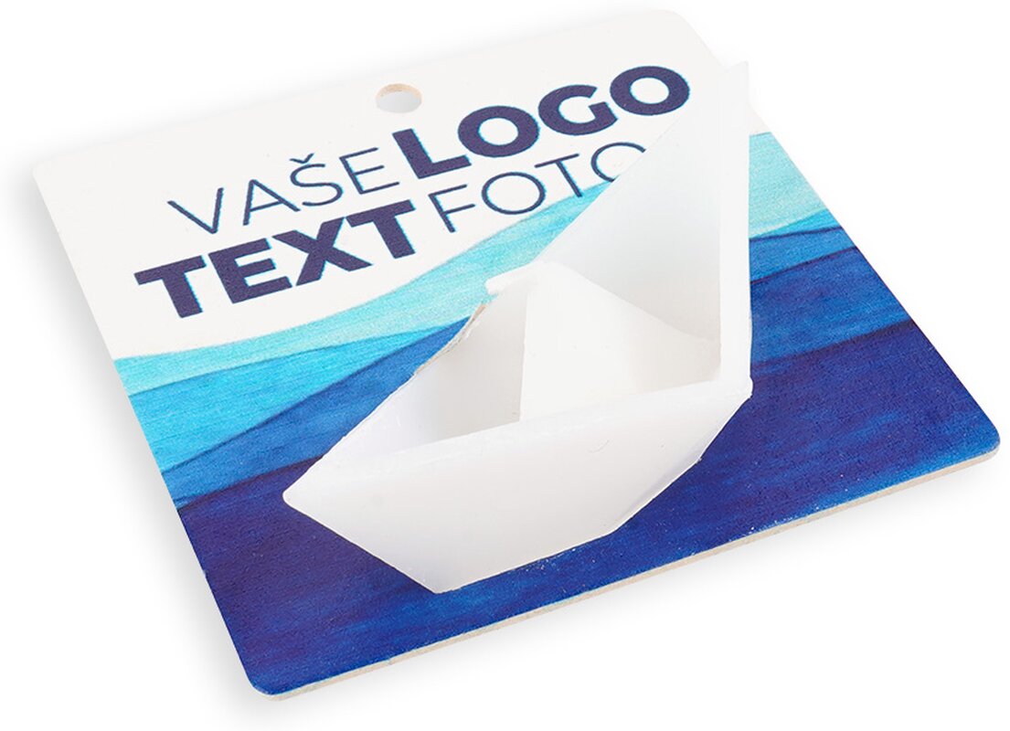Každá lodička je zabalena do celofánového sáčku s mašlí. To z ní činí připravený dárek bez nutnosti dalšího balení. Kartonovou kartičku lze potisknout ze přední, ale i zadní strany podle přání.