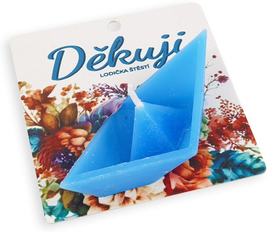 Originální svíčka ve tvaru papírové lodičky představuje netradiční drobný dárek s nádechem symboliky. Je vyrobena z parafínu a díky svému tvaru působí elegantně a hravě zároveň. Hoří minimálně 1 hodinu, takže kromě dekorativní funkce přinese i příjemnou atmosféru. Součástí je darovací kartička.