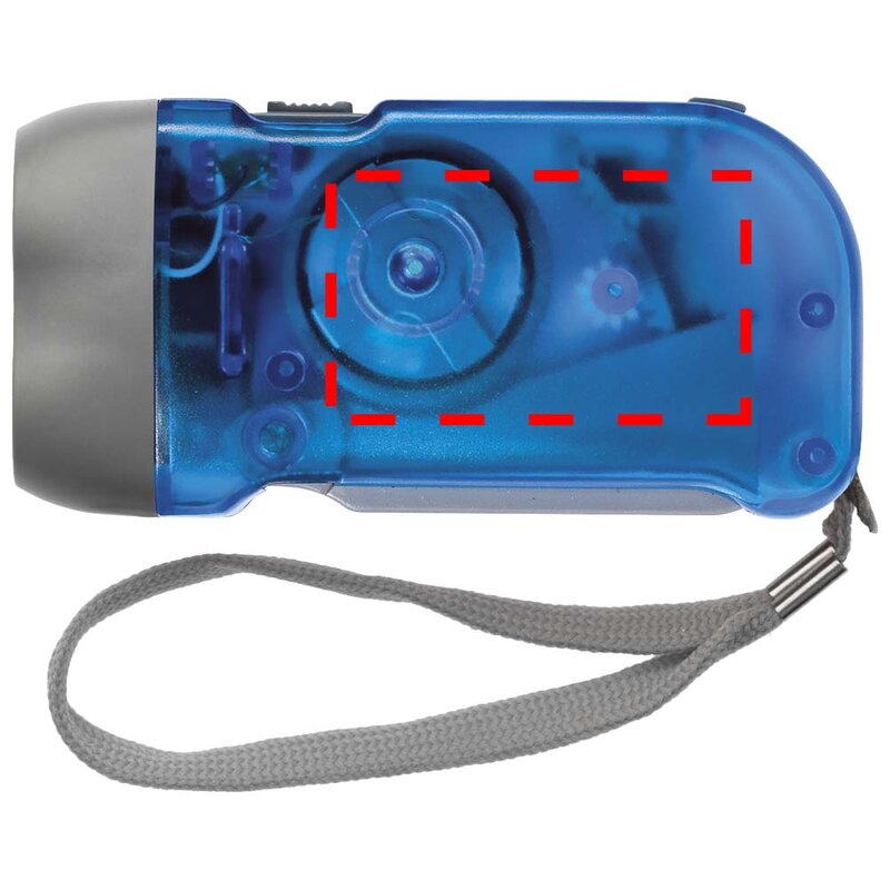 Svítilna s dynamem VIRGO - 2 bílá světla LED svítilny napájená dynamem, ovládaná tlačítkem, mechanismus dobíjení stiskem dynama se zarážkou a s páskou na paži pro celou řadu využití. Dodáváno včetně baterií. Materiál: ABS plast.
