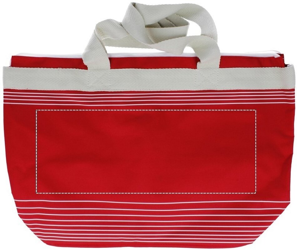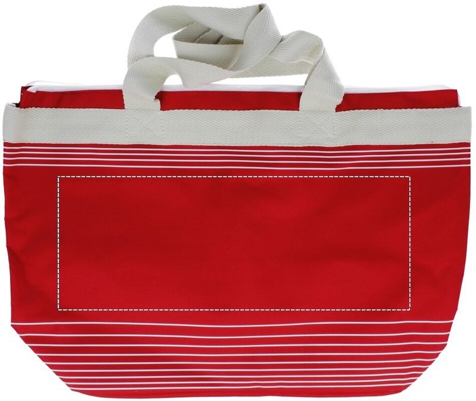 Plážová taška z polyesteru s plátěnými detaily. Provedení ve dvou barvách. Uzavíratelná na zip.