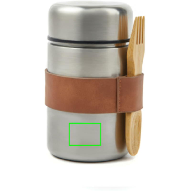Vysoce kvalitní termobox na potraviny o objemu 500ml. Obsahuje dřevěnou lžičku, kterou lze uložit do poutka připevněného na termolahvi. Produkt je vyroben z oceli 18/8.