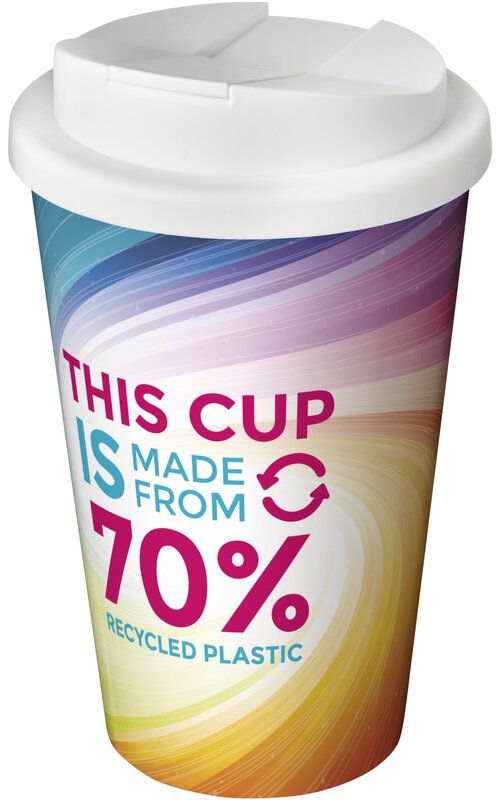 Ekologický termohrnek Brite-Americano® Eco o objemu 350 ml je ideální volbou pro každodenní používání doma, v kanceláři i na cestách. Dvouplášťová konstrukce s tepelnou izolací pomáhá udržet optimální teplotu nápoje, zatímco otočné víčko odolné proti rozlití zajišťuje pohodlné a bezpečné používání. Hrnek je vyroben z 70 % recyklovaného materiálu (recyklovaný plášť a černý vnitřek) a je zcela recyklovatelný, čímž přispívá ke snižování ekologické stopy. Díky možnosti plnobarevného potisku je navíc skvělým nositelem firemního brandingu.