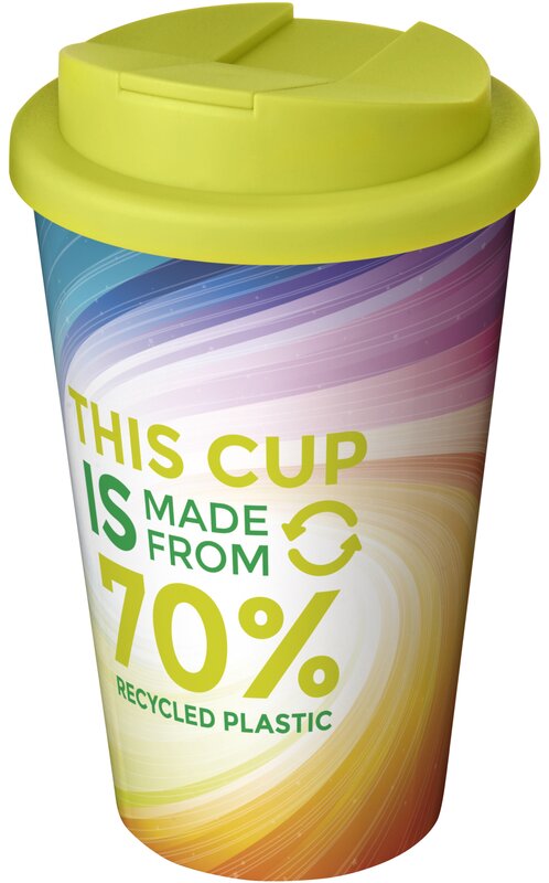 Ekologický termohrnek Brite-Americano® Eco o objemu 350 ml je ideální volbou pro každodenní používání doma, v kanceláři i na cestách. Dvouplášťová konstrukce s tepelnou izolací pomáhá udržet optimální teplotu nápoje, zatímco otočné víčko odolné proti rozlití zajišťuje pohodlné a bezpečné používání. Hrnek je vyroben z 70 % recyklovaného materiálu (recyklovaný plášť a černý vnitřek) a je zcela recyklovatelný, čímž přispívá ke snižování ekologické stopy. Díky možnosti plnobarevného potisku je navíc skvělým nositelem firemního brandingu.