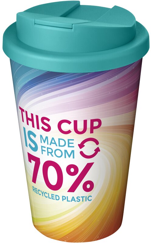 Ekologický termohrnek Brite-Americano® Eco o objemu 350 ml je ideální volbou pro každodenní používání doma, v kanceláři i na cestách. Dvouplášťová konstrukce s tepelnou izolací pomáhá udržet optimální teplotu nápoje, zatímco otočné víčko odolné proti rozlití zajišťuje pohodlné a bezpečné používání. Hrnek je vyroben z 70 % recyklovaného materiálu (recyklovaný plášť a černý vnitřek) a je zcela recyklovatelný, čímž přispívá ke snižování ekologické stopy. Díky možnosti plnobarevného potisku je navíc skvělým nositelem firemního brandingu.