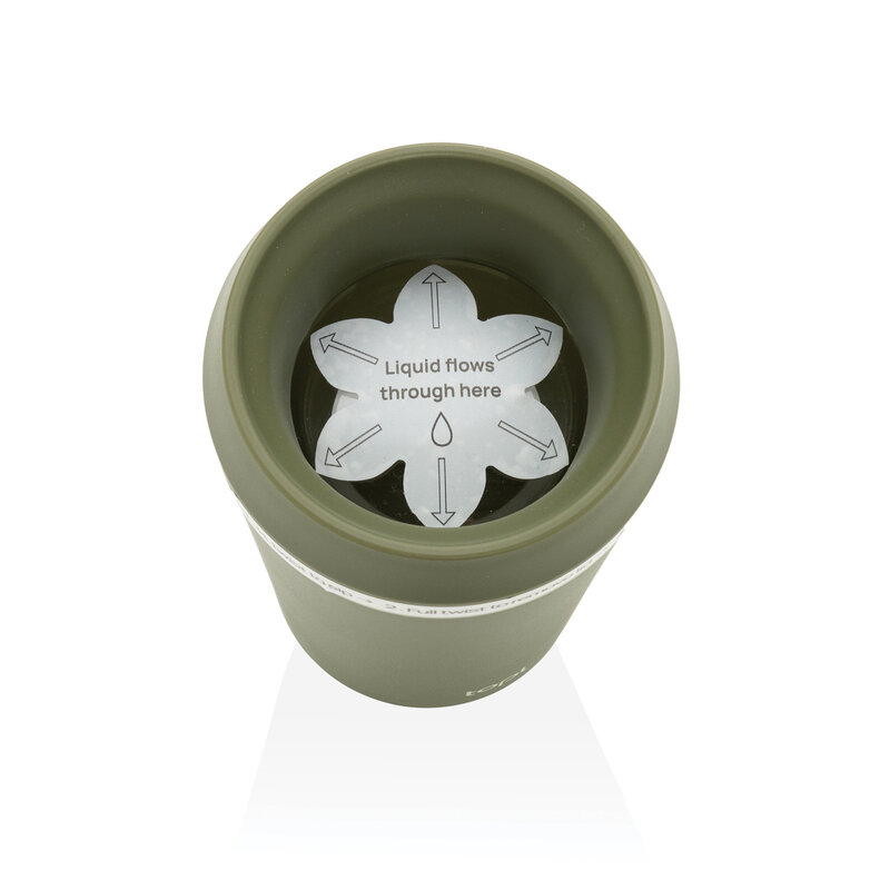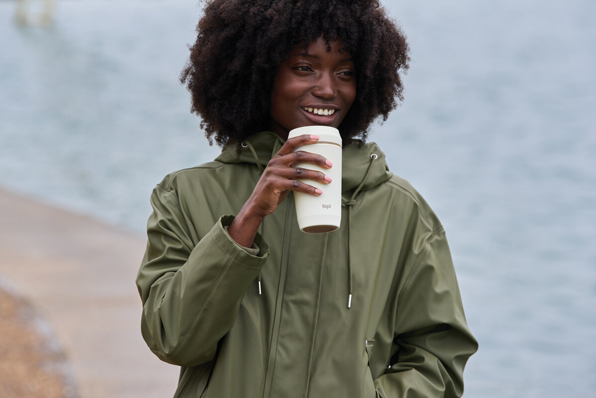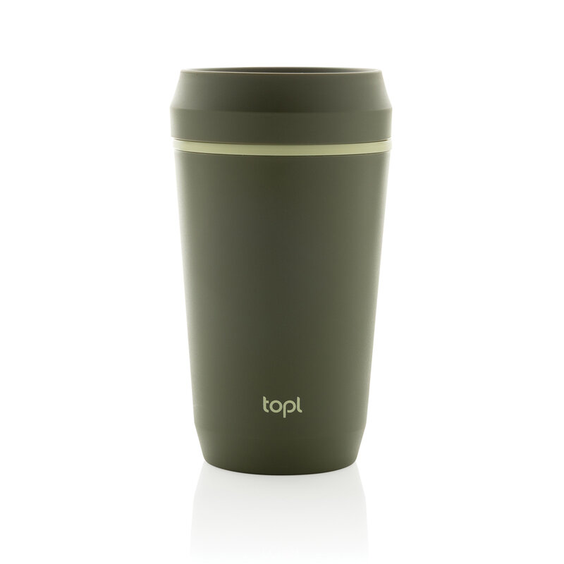 Hrnek Topl To Go je lehký a odolný společník pro milovníky kávy s kapacitou 12oz (354 ml). Tělo z RCS certifikovaného recyklovaného polypropylénu kombinuje udržitelnost s praktičností. Hrnek udržuje nápoje teplé až 2 hodiny a studené až 4 hodiny. Patentovaný 360° design víčka umožňuje pití z libovolného úhlu, zatímco transparentní nepropustné víčko vám umožní vidět váš nápoj.