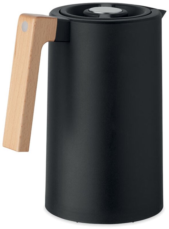 Vyrobena je z 90 % recyklované nerezové oceli, což jí dodává nejen vysokou odolnost, ale také ekologický rozměr. Vnější stěna je z kvalitního PP plastu a pohodlná dřevěná rukojeť dodává konvici přírodní a elegantní vzhled.