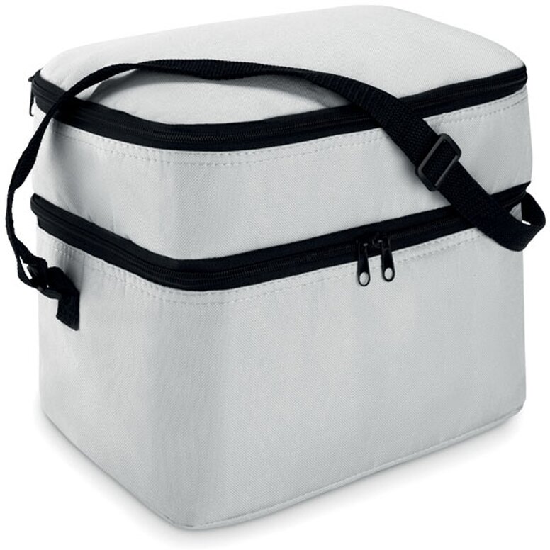 Chladicí taška s dvěma přihrádkami a nastavitelným popruhem přes rameno. Polyester 600D