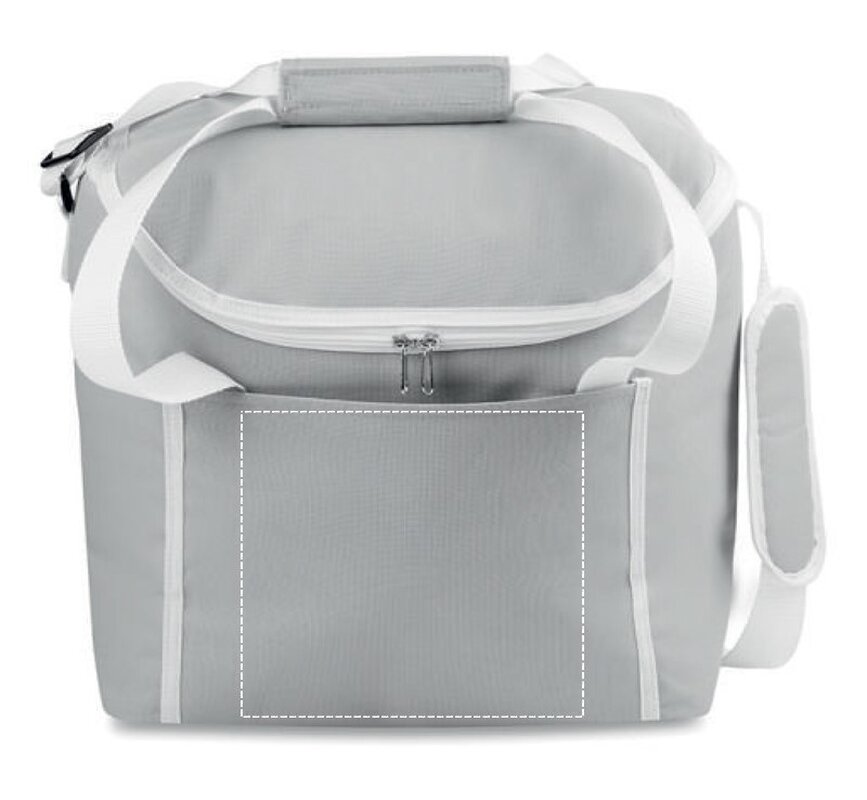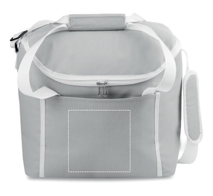 Chladicí taška ze 600D polyesteru s PEVA podšívkou a jednou postranní kapsou.
