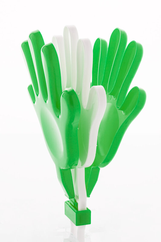 plastová ruka na fandění vyrobená z recyklovaného plastu