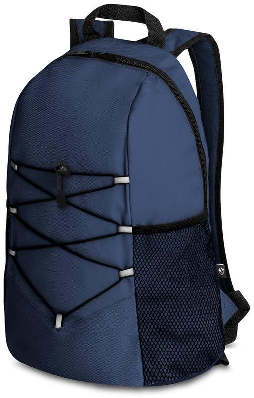 Batoh z 600D s bočními kapsami ze síťoviny a vnitřní kapsou. Zadní část a popruhy jsou polstrované. Kapacita je až 15 L. 250 x 420 x 180 mm