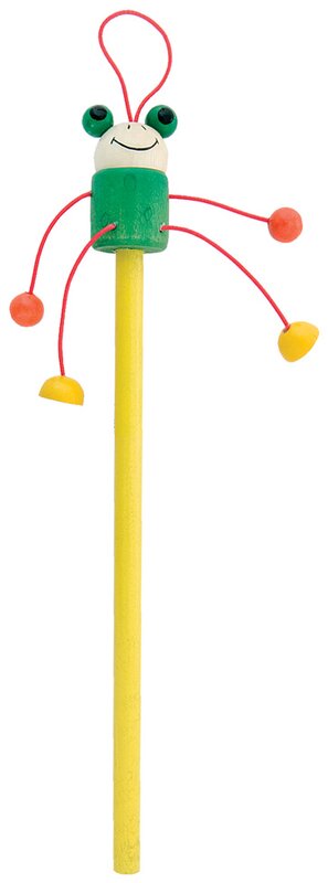 Dřevěná tužka s barevnou figurkou, neořezaná.