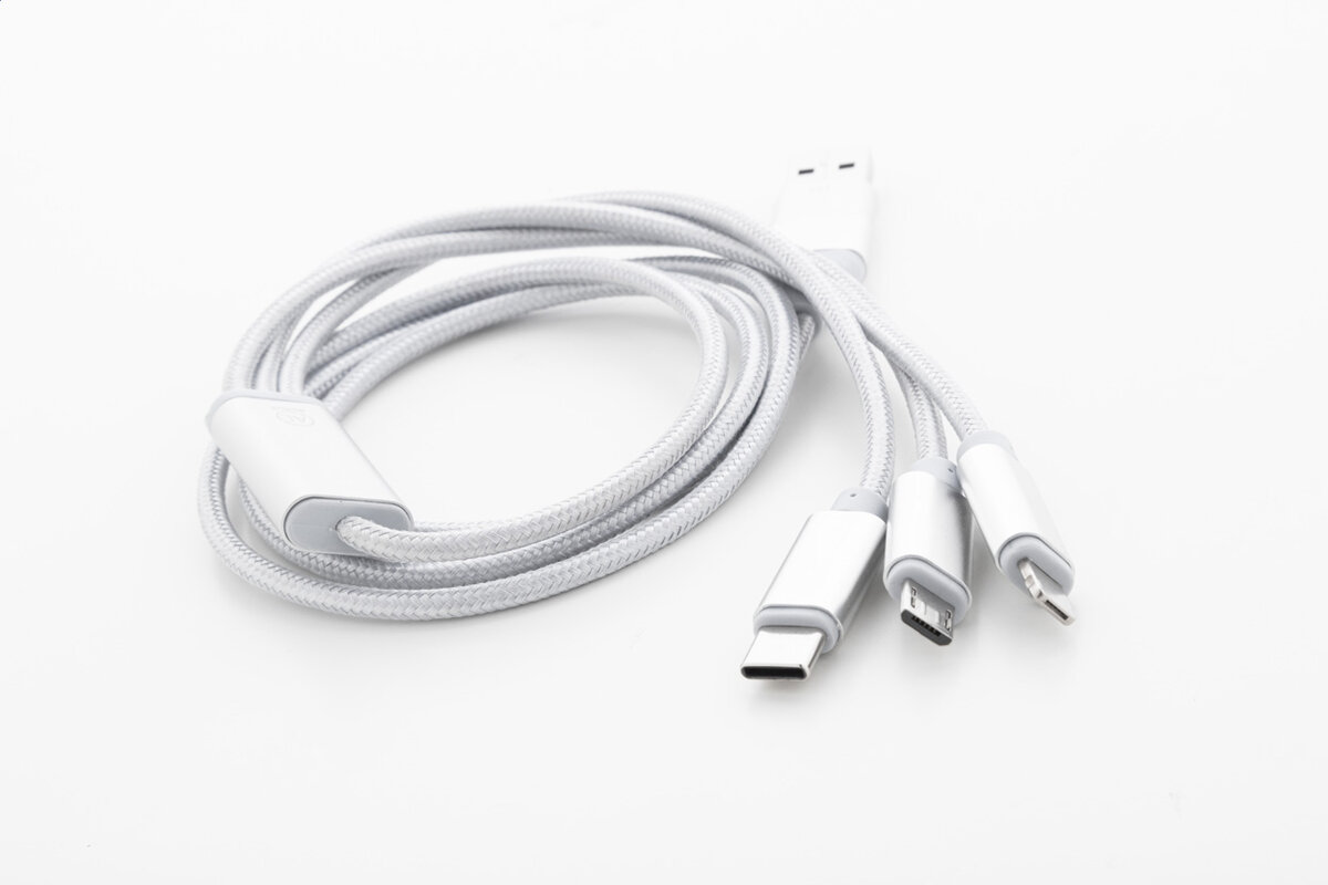 USB nabíjecí kabel z recyklovaného hliníku a RPET s konektory: