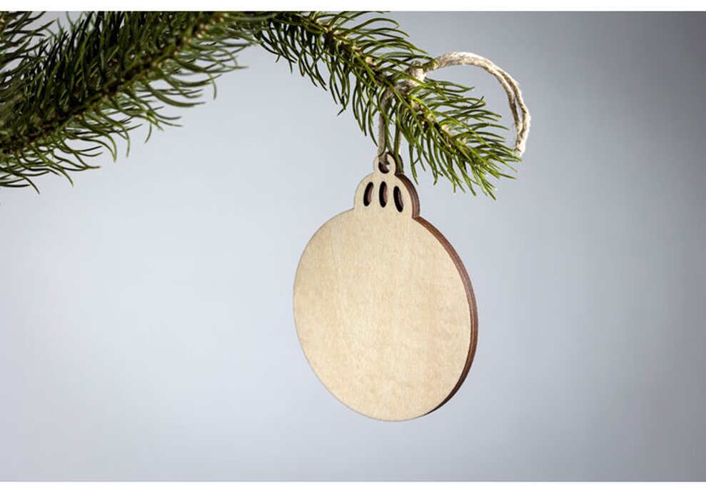 Vánoční ozdoba KIVA ve tvaru koule. Vyrobeno z překližky s jutovým provazem. Ideální pro sublimační tisk. Bílý potisk není možný.