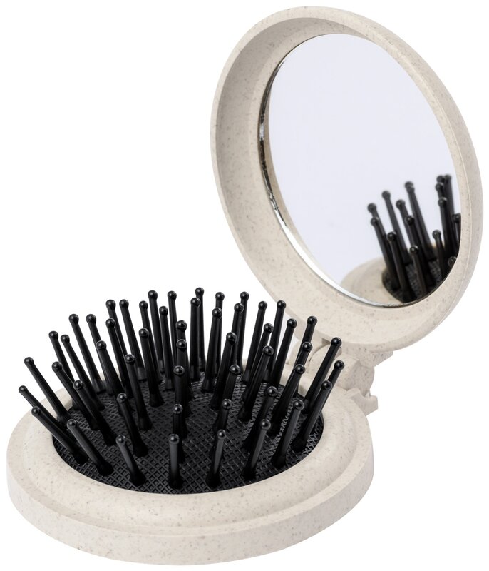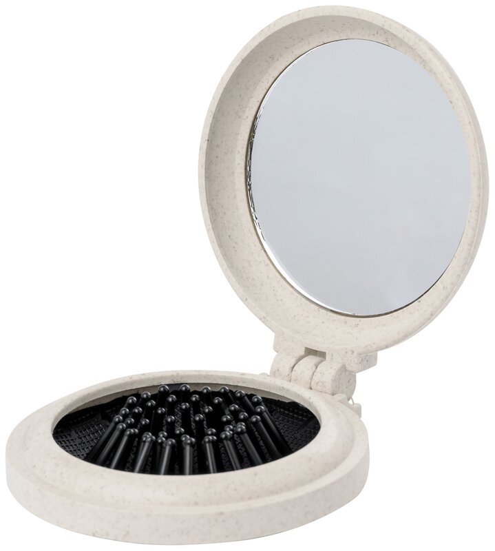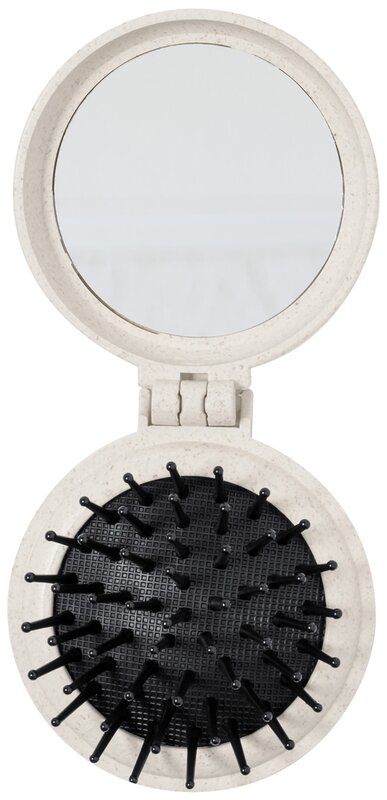 Skládací, ekologický plastový kartáč na vlasy z pšeničné slámy se zrcátkem.